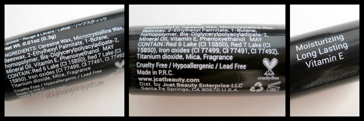 (J.CAT BEAUTY), the product (FANTABULOUS LIPSTICK), the shade number, bar code,